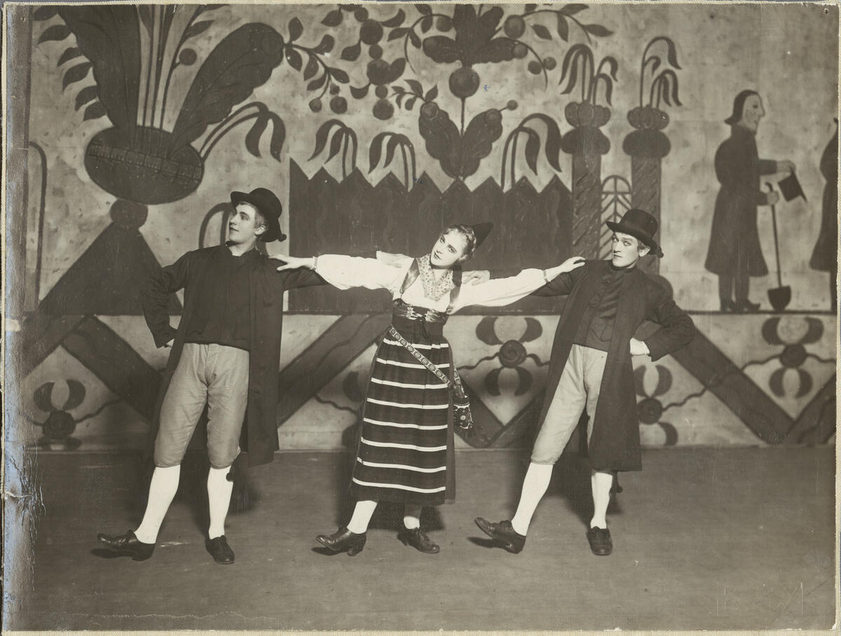 Rollporträtt av Kaj Smith, Margit Wåhlander och Eric Viber i uppsättningen "Dansgille".