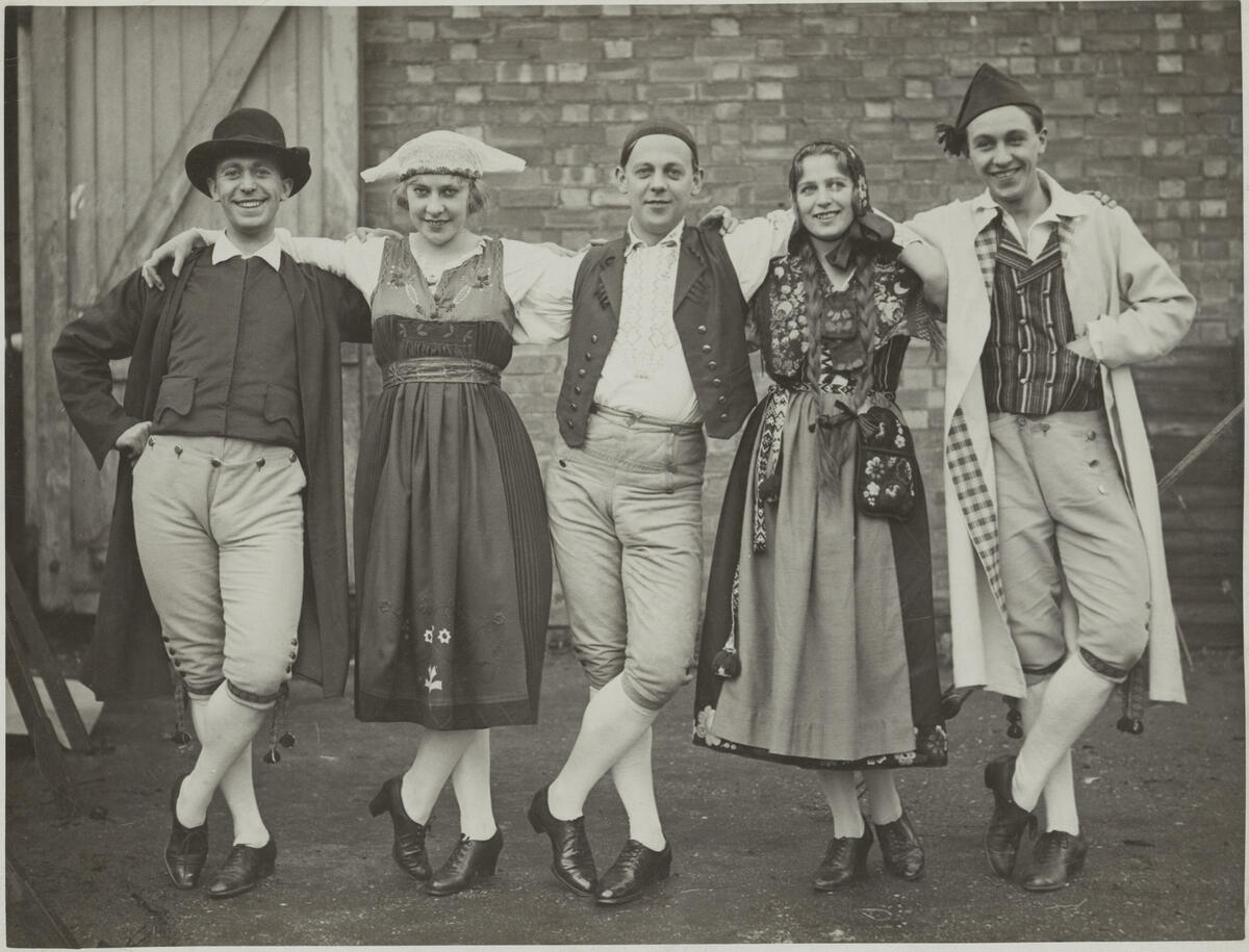 Rollporträtt av Paul Eltorp, Margit Wåhlander, Jean Börlin, Greta Lundberg och Kaj Smith i uppsättningen "Dansgille".
