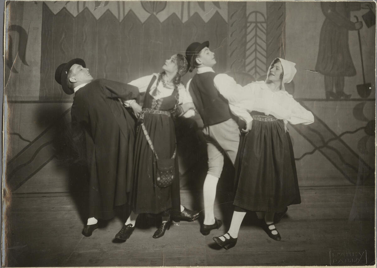 Rollporträtt av Rupert Doone, Inger Friis, Sam Blomkvist och Siva Blomkvist i uppsättningen "Dansgille".