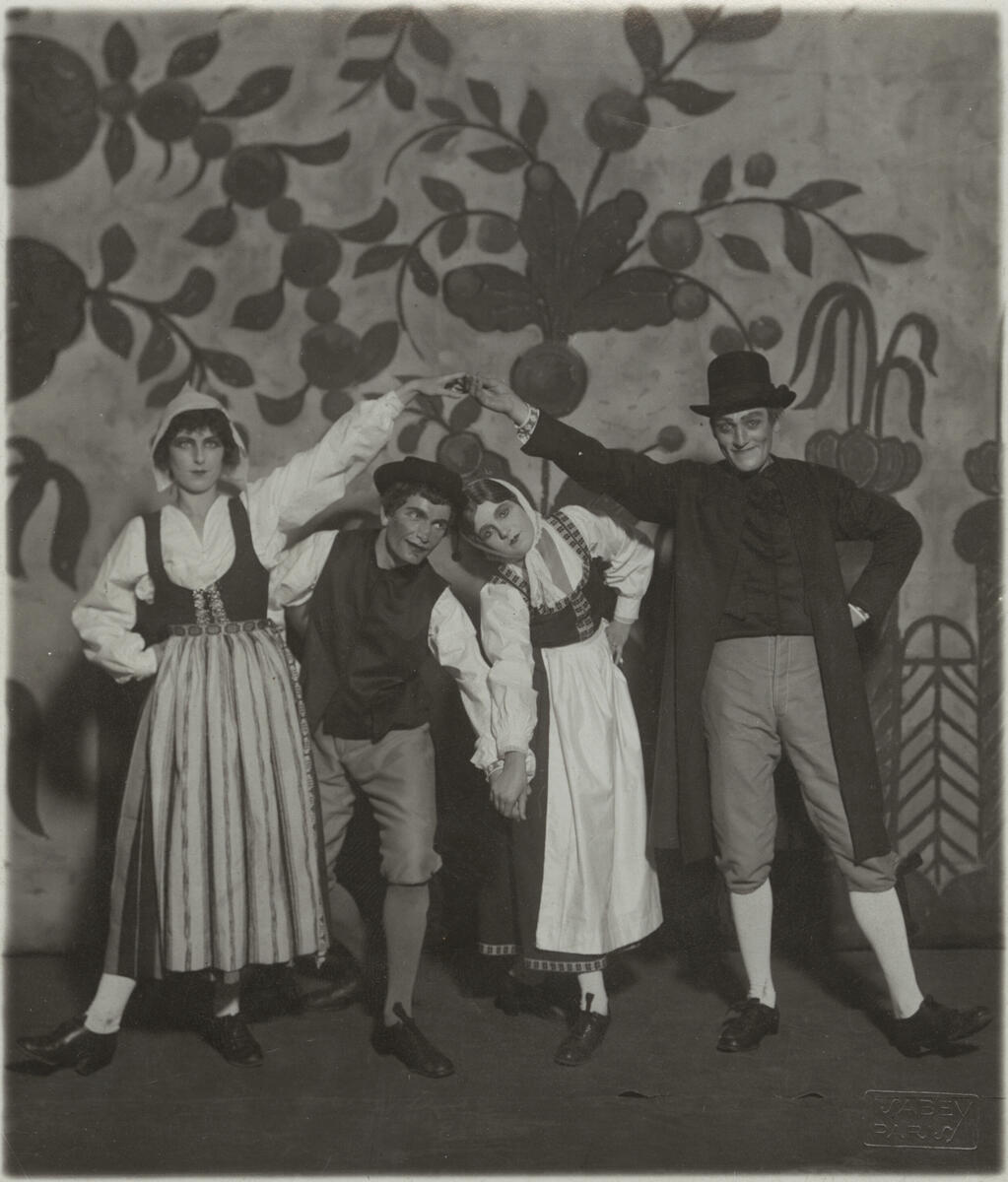 Rollporträtt av Greta Kähr, Léon Stettler, oidentifierad dansare samt Eric Viber i uppsättningen "Dansgille".