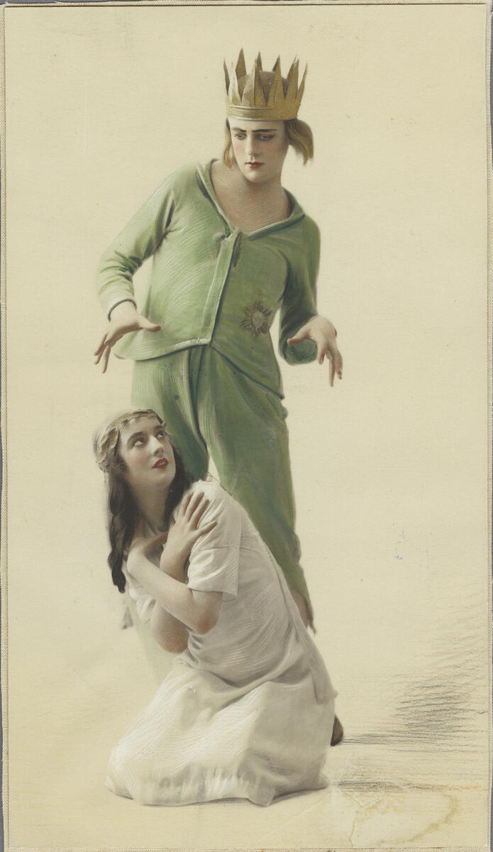 Kolorerat rollporträtt av Jolanda Figoni och Jean Börlin i uppsättningen "Dårhuset".