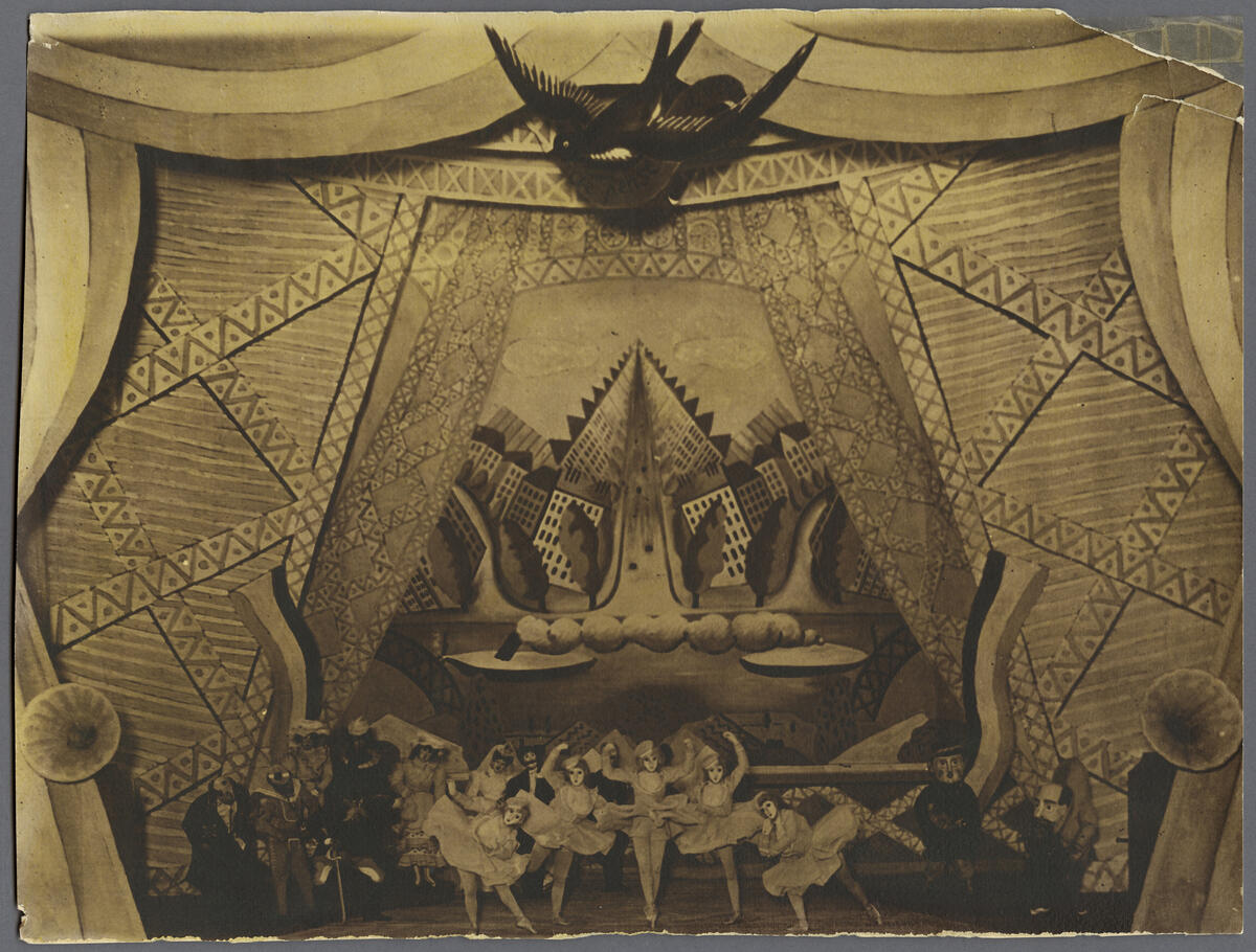 Scenbild från Svenska Balettens uppsättning "Bröllopet på Eiffeltornet".