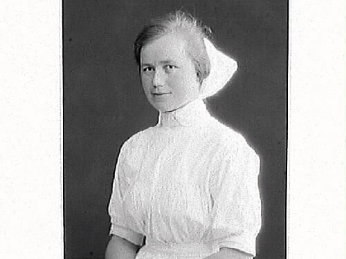 Porträtt av sjuksköterskan Alma Eliasson, Varbergs gamla lasarett.