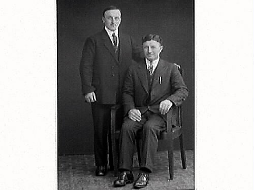 Gruppbild, två män. Karl Andersson, Sällstorp, beställde bilden och är troligen den som står upp.