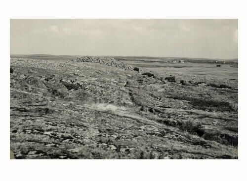 Fornlämningar. Bild E1534 visar gravröse och fornstrandlinjer, övriga två bilder visar gravrösen från bronsåldern. Getterön, Stora Gubbanäsan.