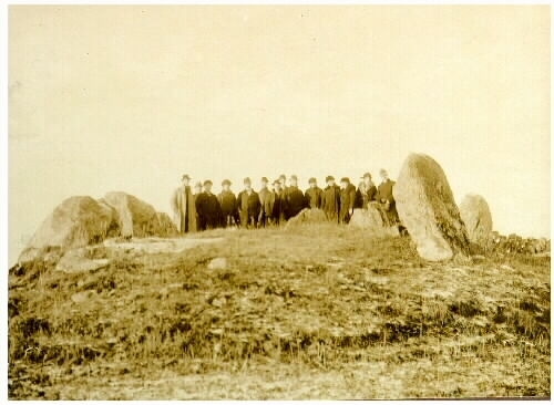 Dös, storstensgrav, en långdös från yngre stenåldern i Klastorp utanför Varberg. 15 personer står på rad bakom graven. Det finns även en runddös i socknen.