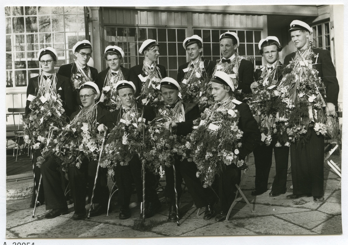 Titel: Studentexamen I Kalmar. Kortet taget på Teatervallen utanför restaurangen Teaterkällaren.