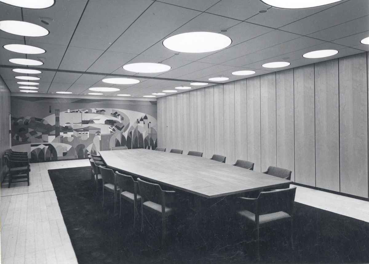 Gamla landstingshuset byggt 1958. Väggmålning av Sigfrid Södergren i södra landstingslokalen.