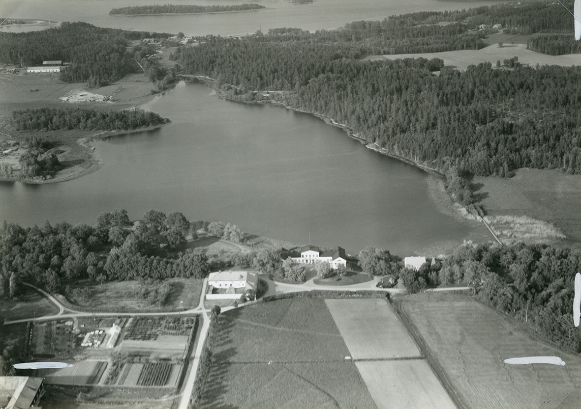 Flygfoto över Blekhem. Hela fotot samt det vykort som producerades.