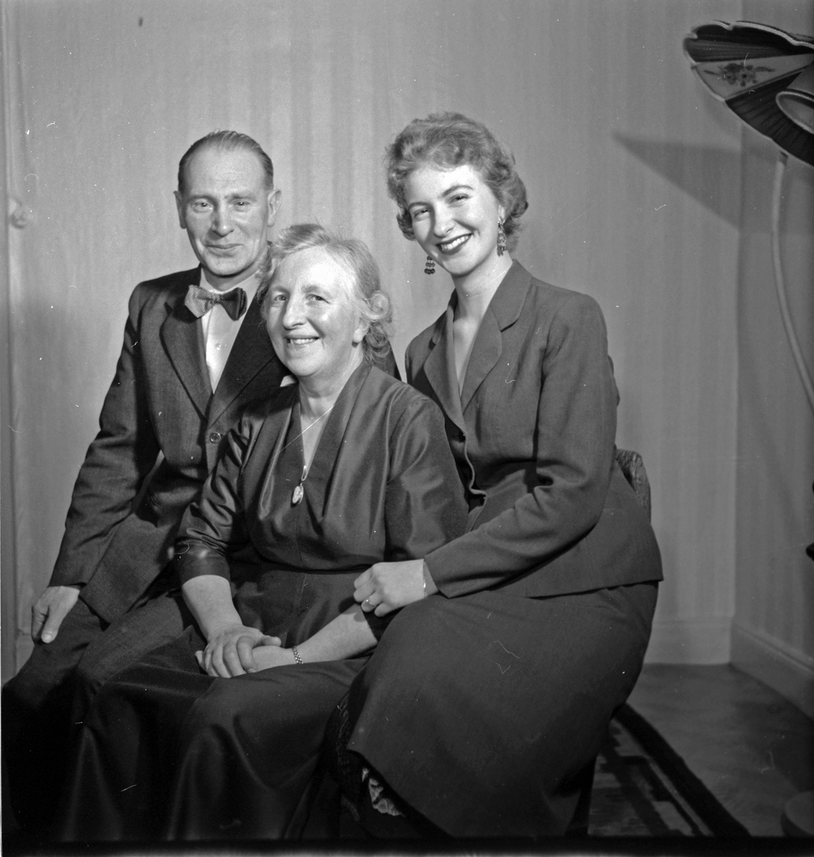 Porträttbild av familj, äldre man och kvinna samt yngre kvinna