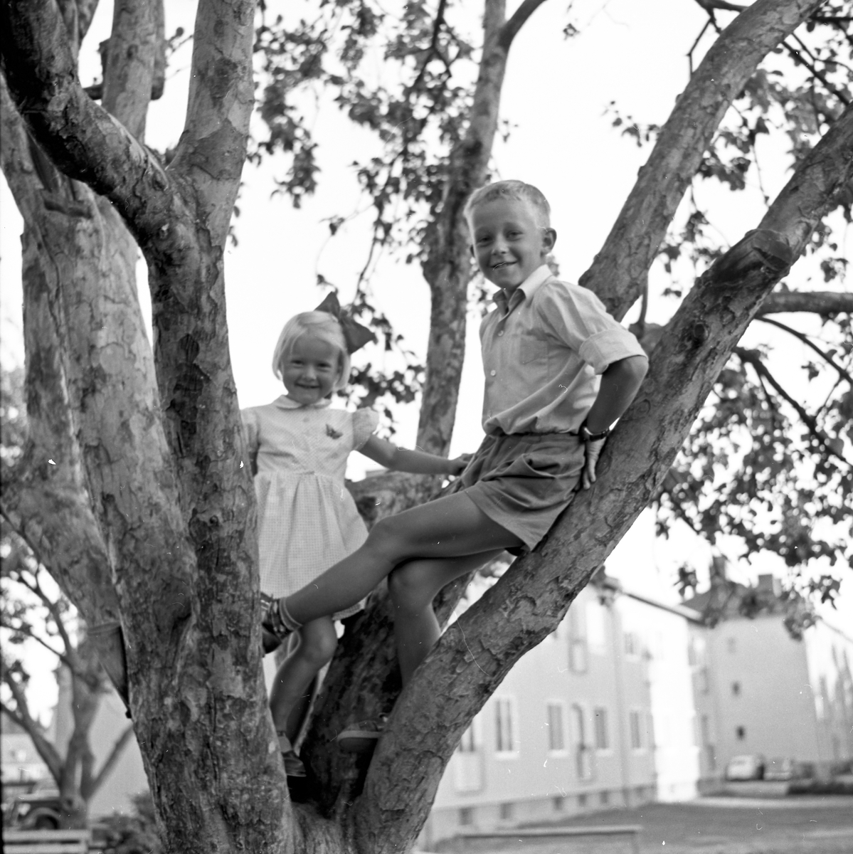 Titel: Syskonbild, bror och syster i ett träd
