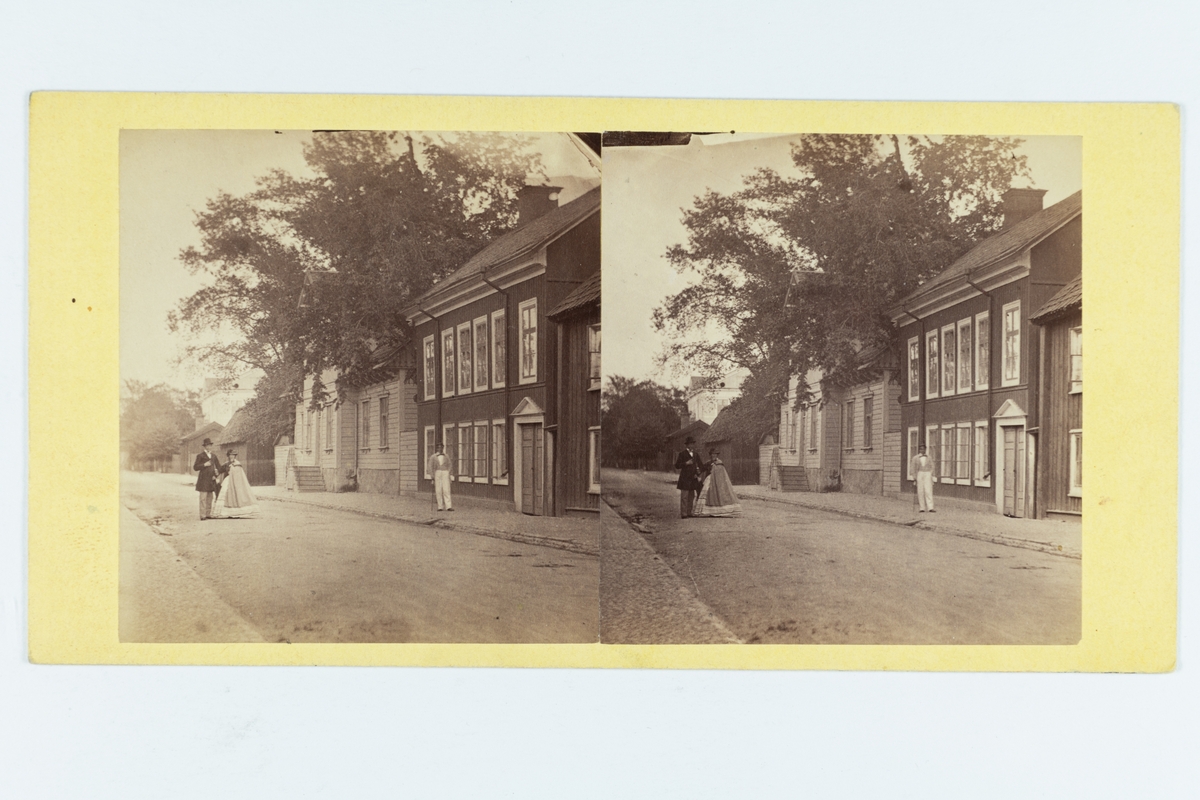 Till vänster på bilden rektor Strömberg med fru. Till höger, på trottoaren löjtnant Falkman.