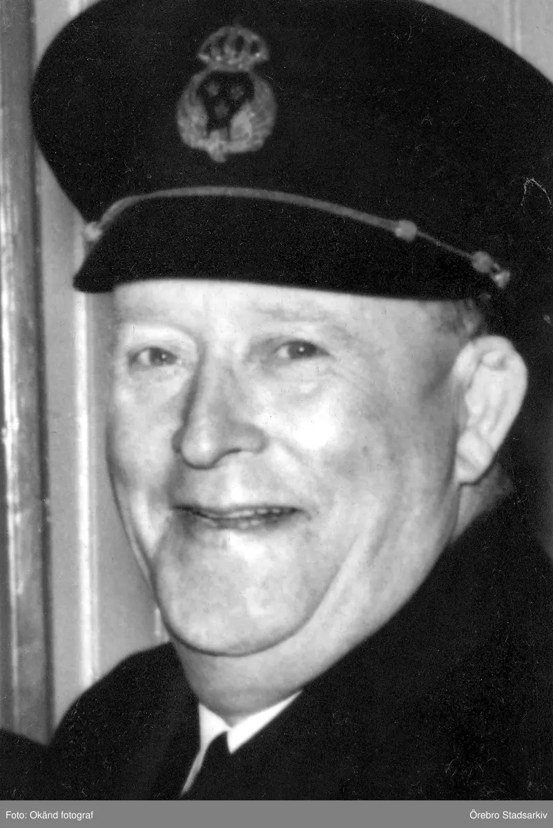 Hallberg i sin hatt med SJ-märke, 1949