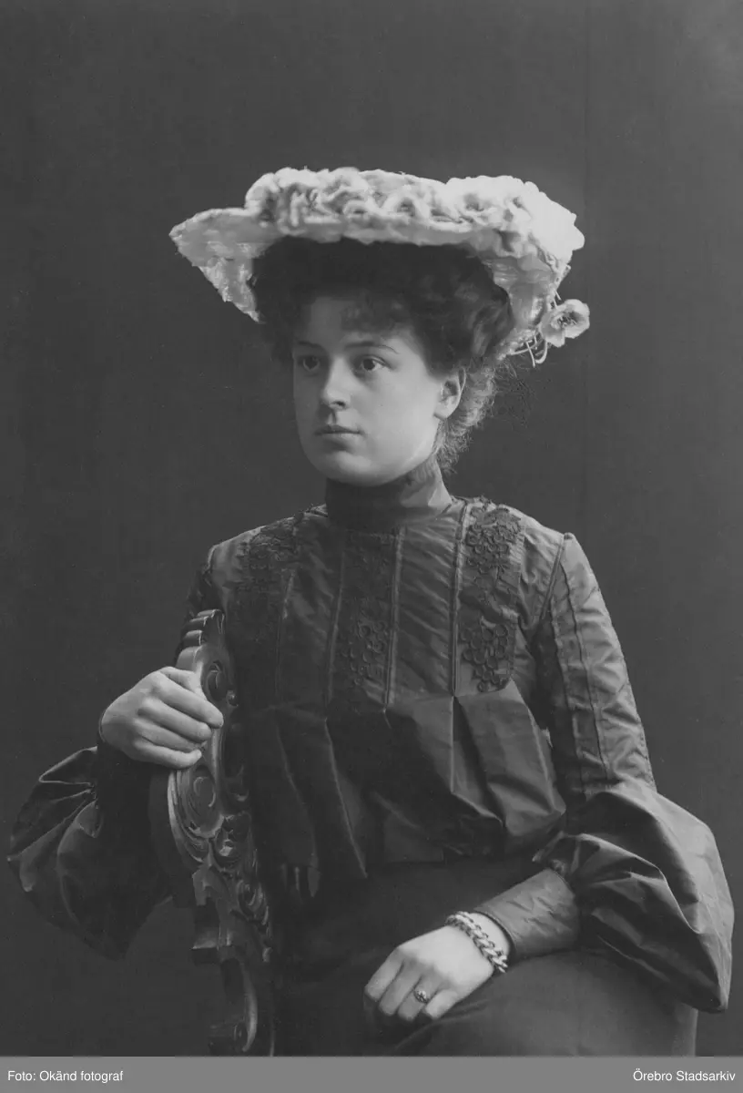 Porträtt av kvinna i hatt, 1900-tal