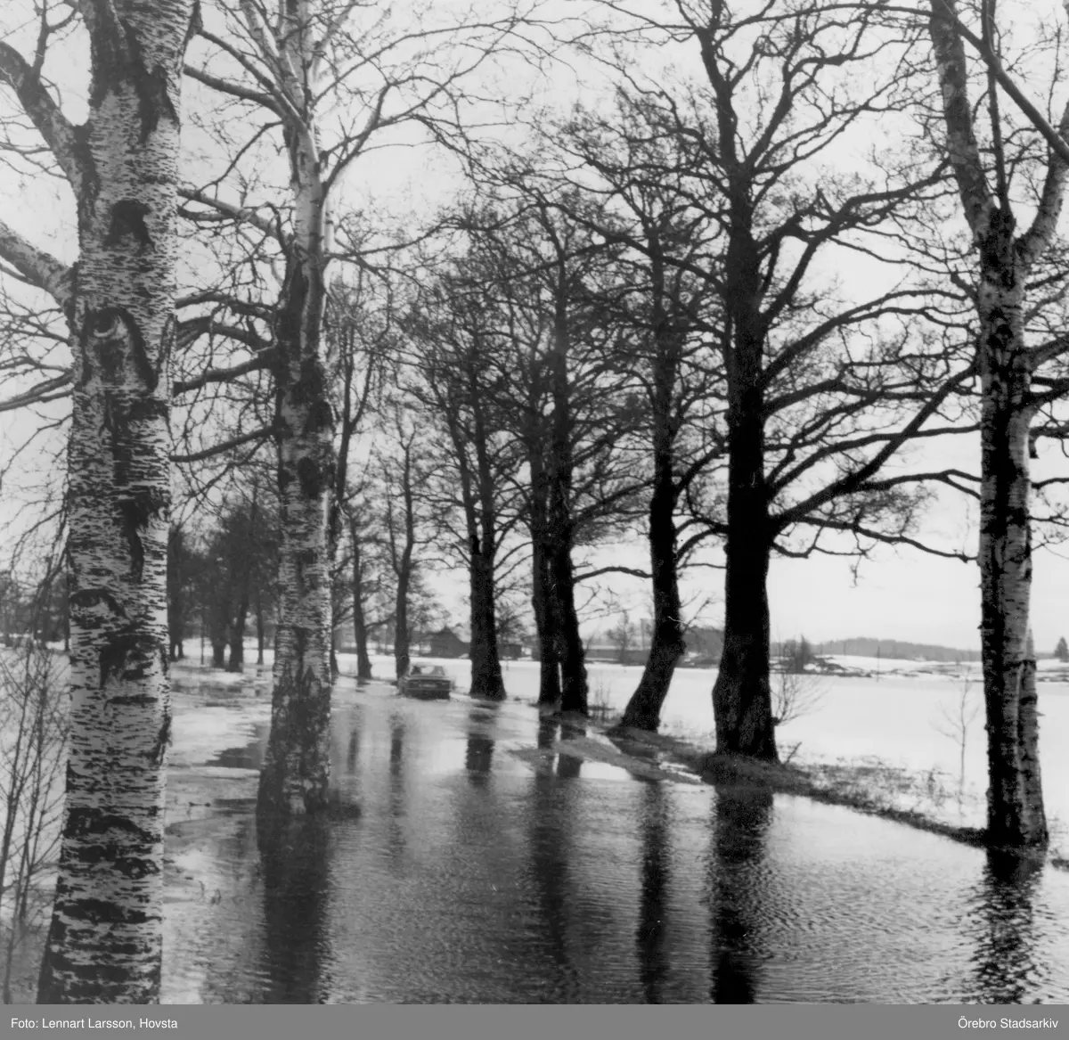 Vårfloden har svämmat över väg i Ervalla, 1977
