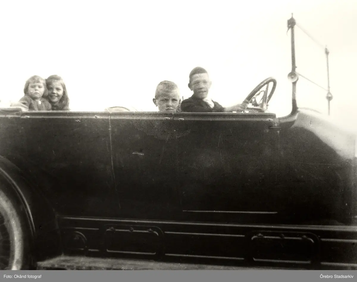 Barn i Charkuterihandlare Janssons bil, 1920-tal