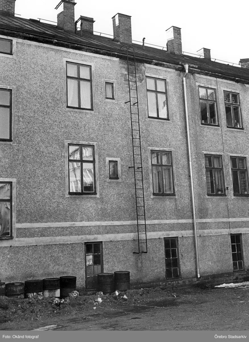 Brandstege på fasad på Karlslundsgatan 20, 1970-tal