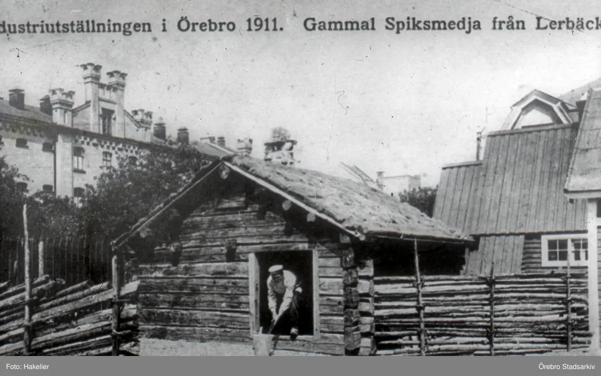Spiksmedja på Slottsgatan under industriutställning i örebro, 1911