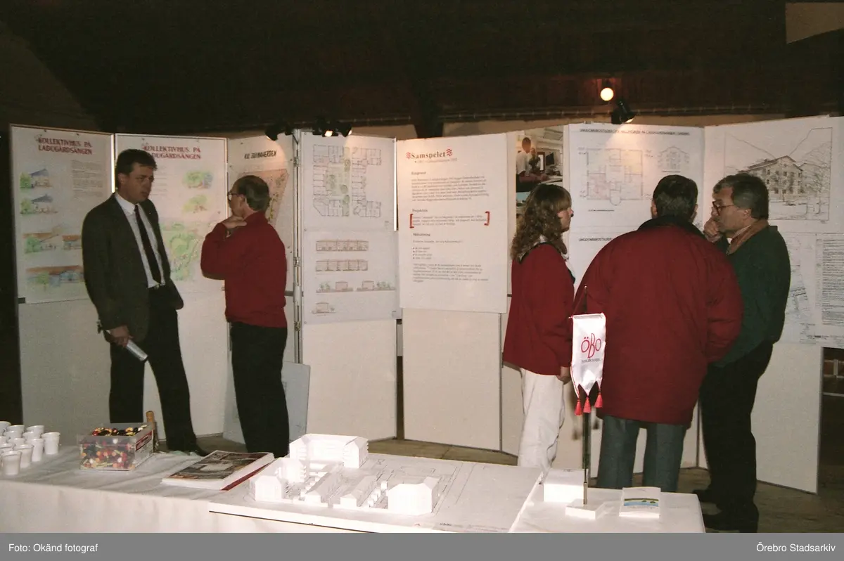 Besökare tittar på utställning på Bomässan, 1992