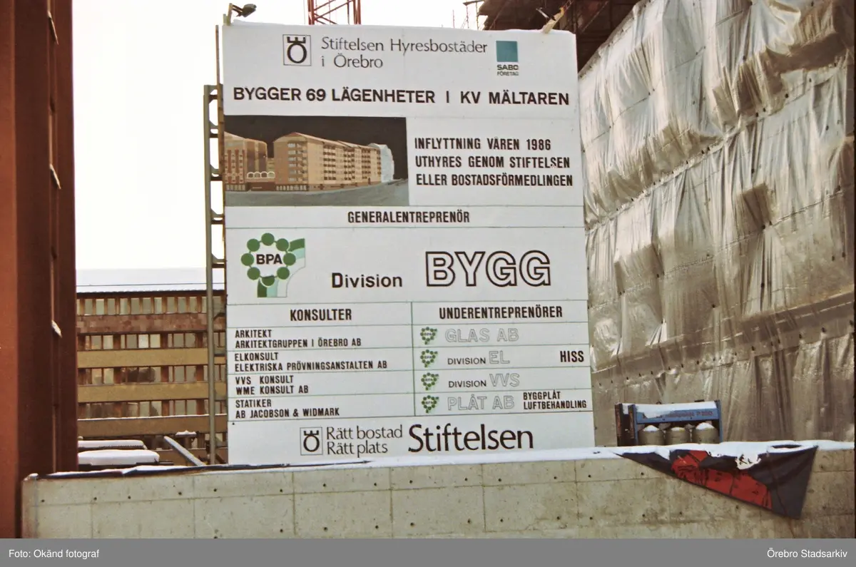 Entreprenörsskyltar i kvarteret Mältaren, 1986