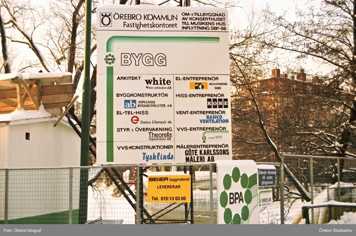 Entreprenörsskyltar vid om och tillbyggnad av Konserthuset, 1986, 1986