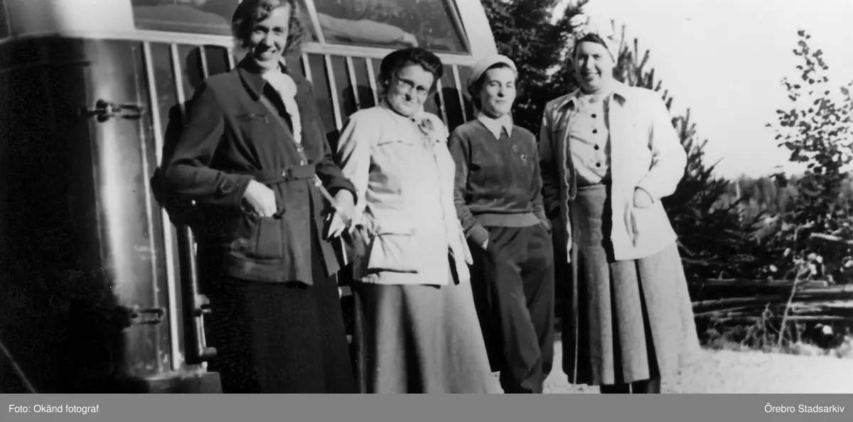 En grupp med kvinnor på utflykt med buss, 1950-tal