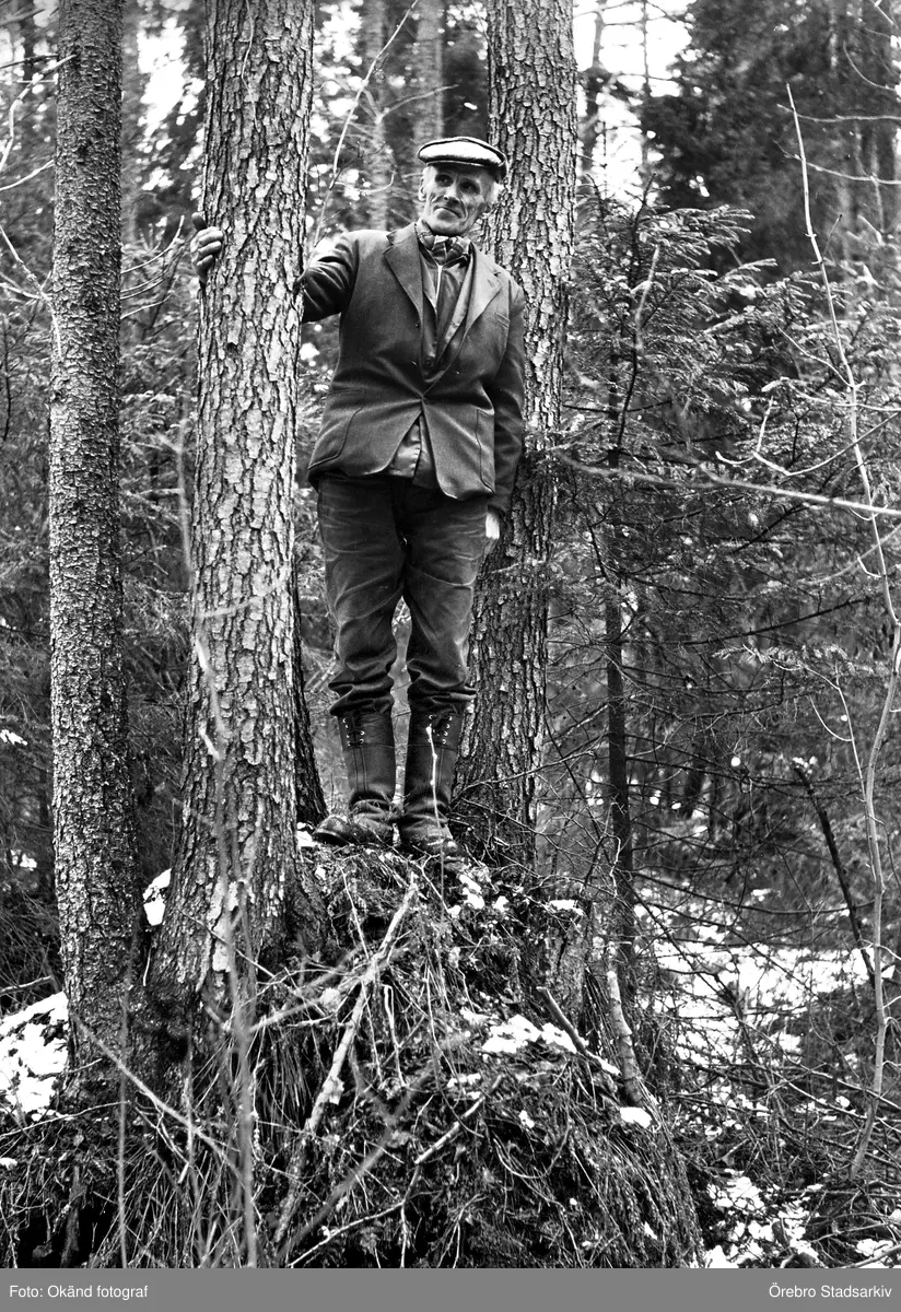 Axel Wijk på sten i skogen i Malgräva i Asker, 1976