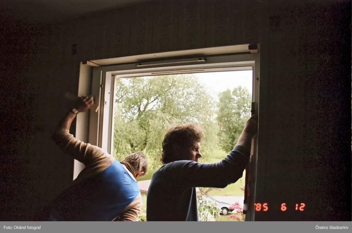Nya fönsterkarmar på plats i Stjärnhusen, 1985-06-12