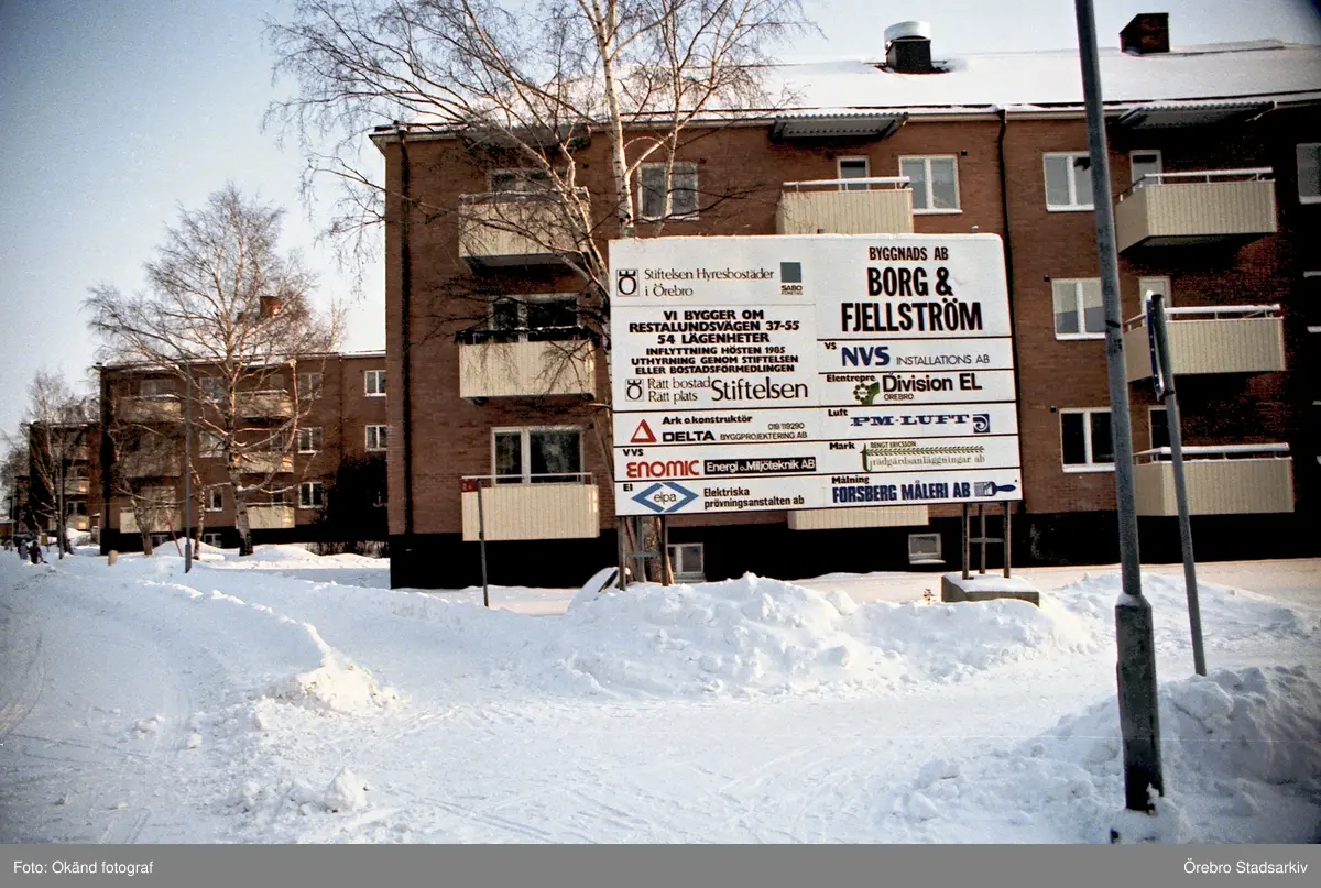Entreprenörsskyltar vid Restalundsvägen, 1985