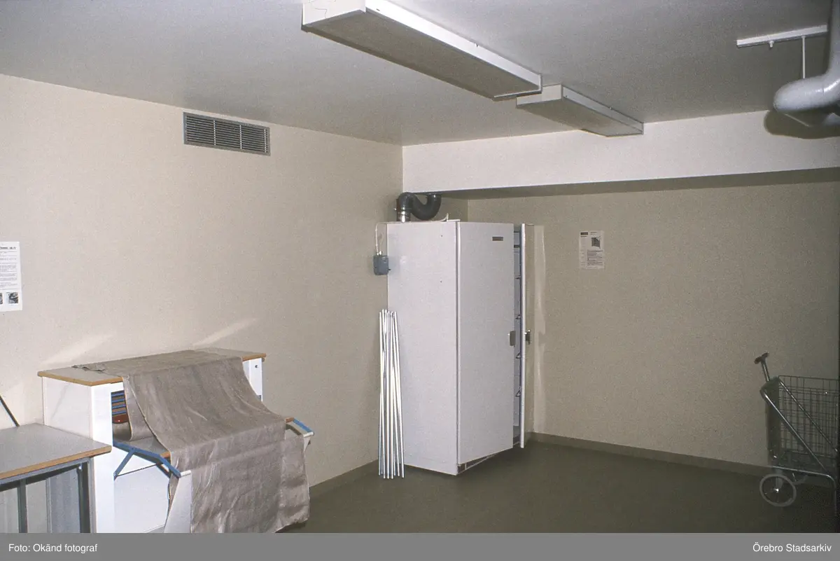Tvättstuga med mangel och torkskåp på Skäpplandsgatan i Västhaga, 1970