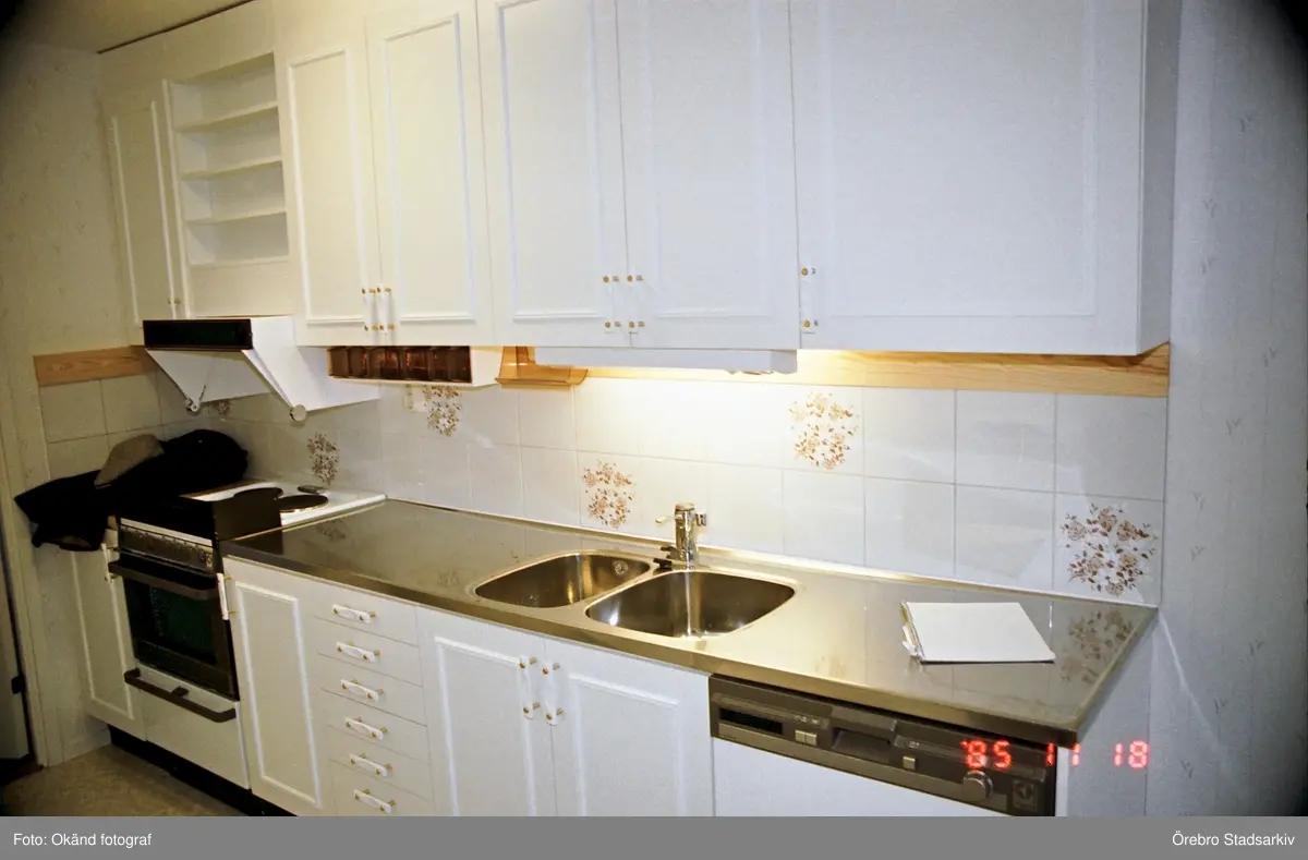 Kök med spis, diskbänk och diskmaskin i Södermalm, 1985-11-18
