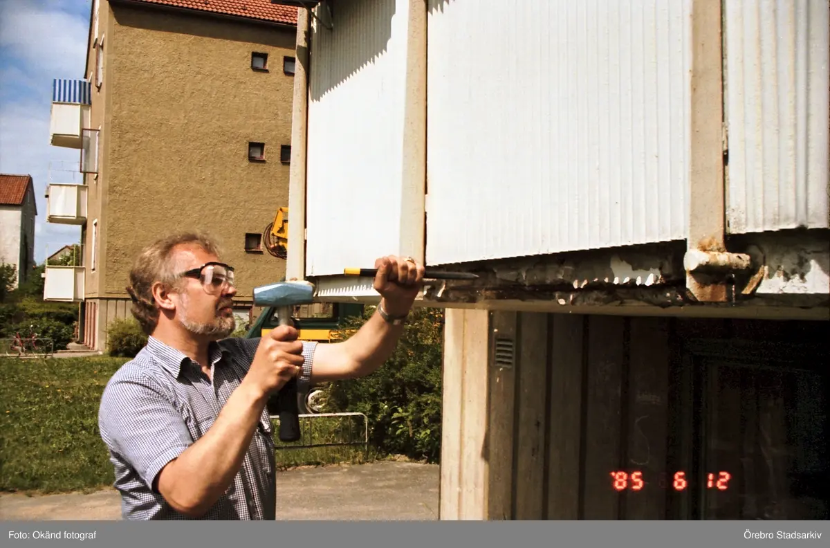 Reparation av skada på balkong i Stjärnhusen, 1985-06-12