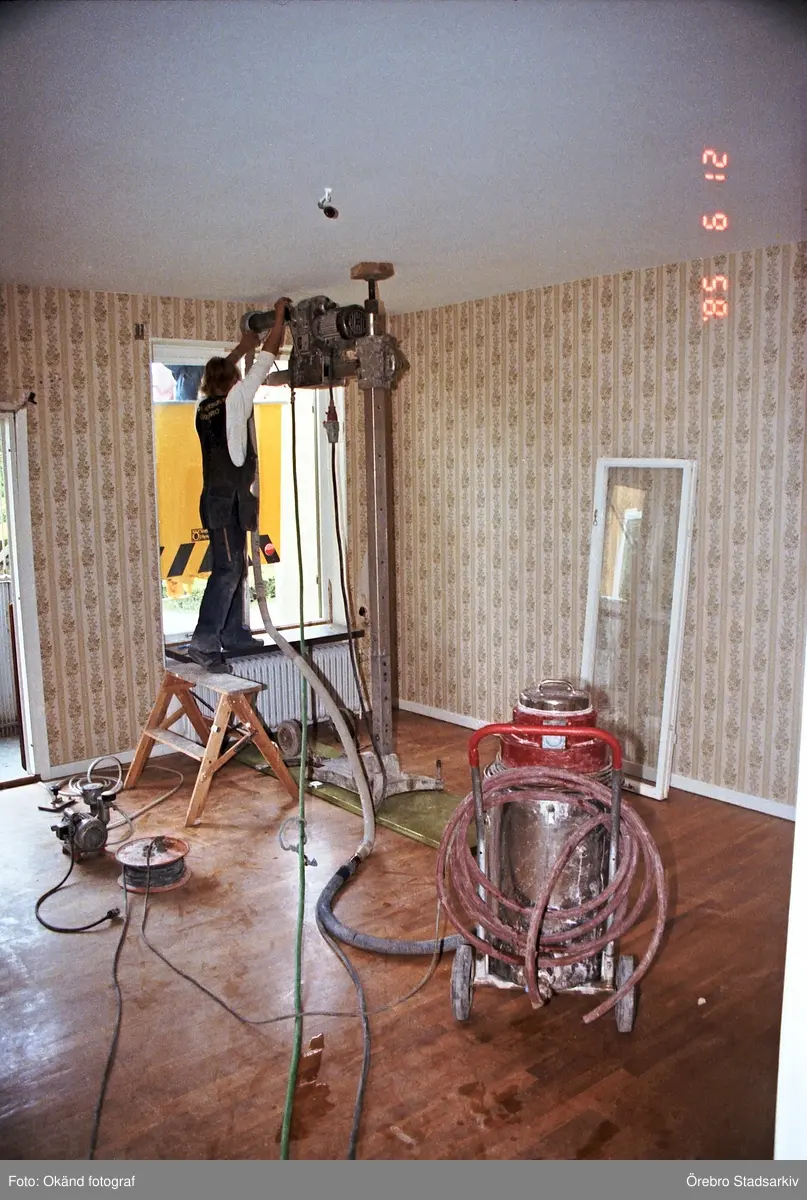 Håltagning i vägg i lägenhet i Stjärnhusen, 1985-06-12