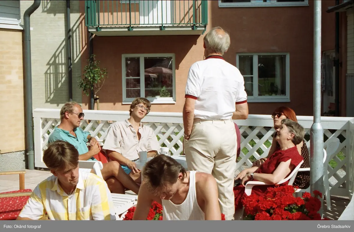 Grupp på veranda i Ladugårdsängen, efter 1992
