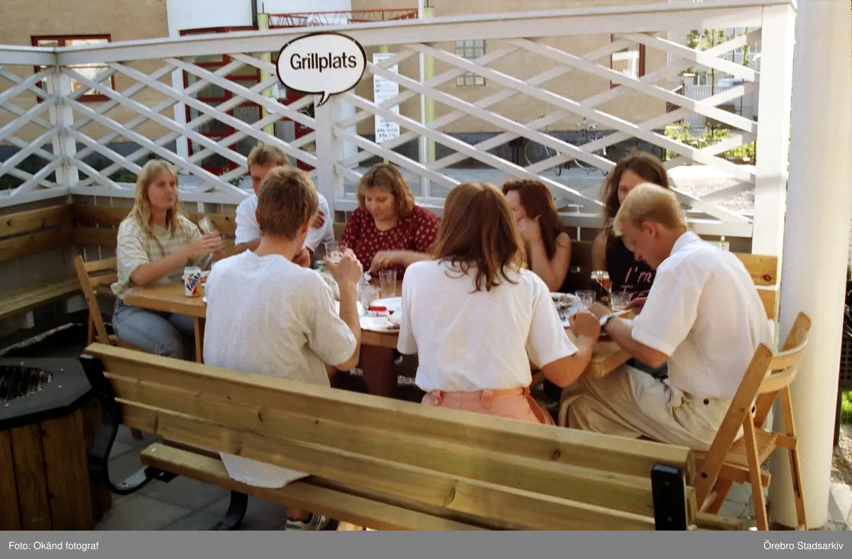 Grupp vid grillplats i Ladugårdsängen, efter 1992