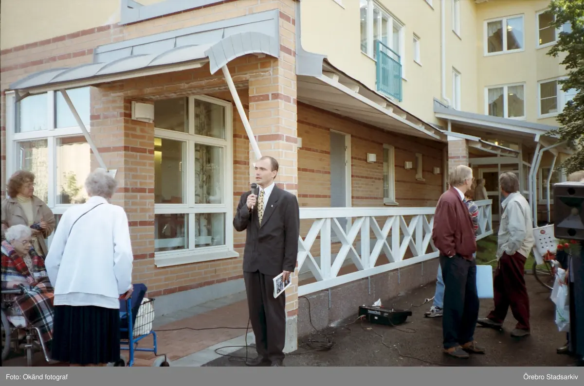 Ola Ström invigningstalar vid äldreboendet i Västhaga, 1990-tal