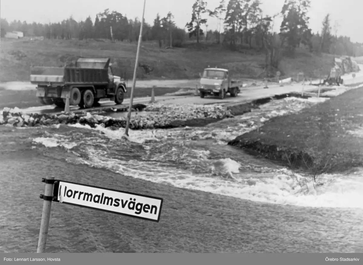 Vägarbete vid översvämning i Vedevår i Lindesberg, 1977