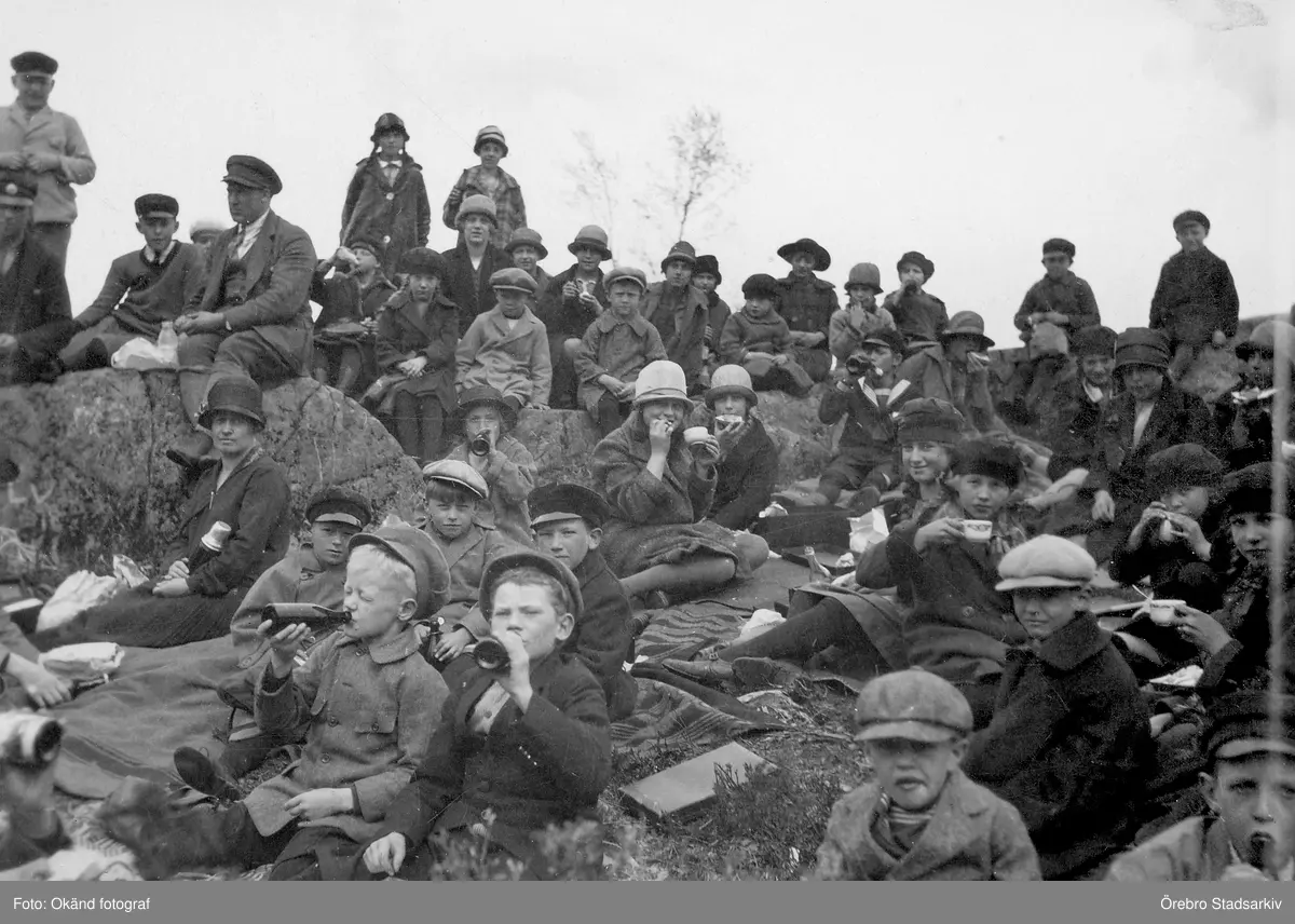 Paus vid skolutflykt till Lekhytteklint i Hidinge, 1920-tal
