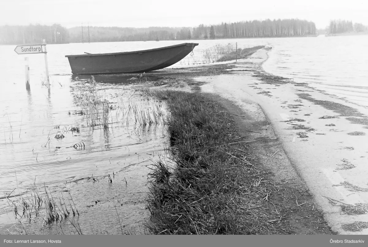Båt använd vid översvämning vid Sundtorp i Ervalla, 1977