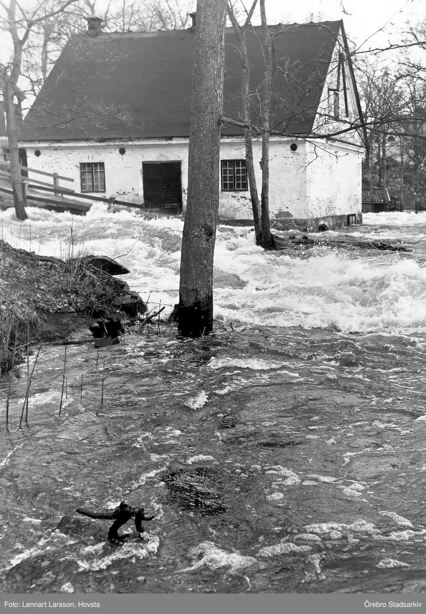 Strömmande vatten i Kvarnforsen vid översvämning i Järle i Ervalla, 1977