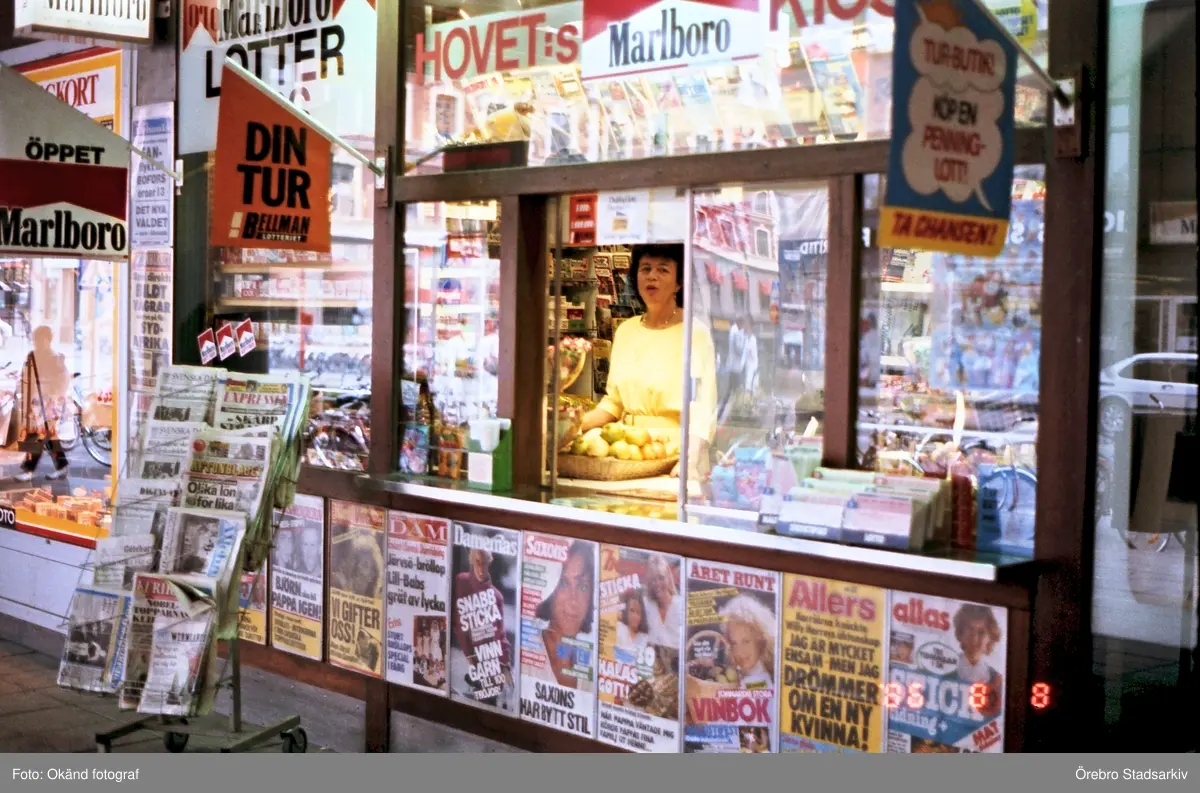 Hovet:s kiosk på Drottninggatan 27, 1986-08-08