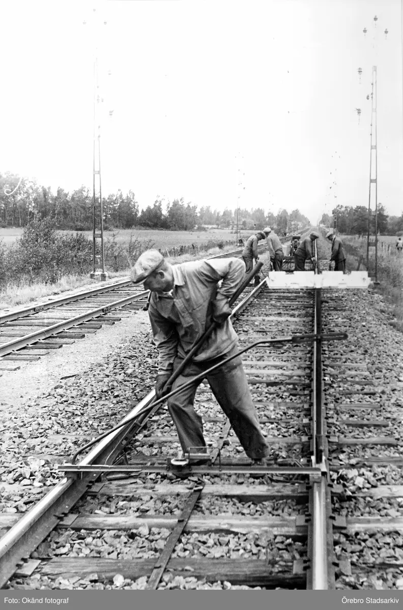 Knut Lood i arbete med rälsbyte på sträckan Adolfsberg-Marieberg, 1950-tal