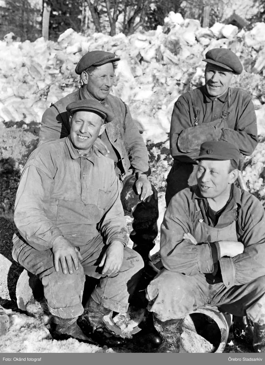 Fyra banarbetare sittade på cementrör, 1950-tal