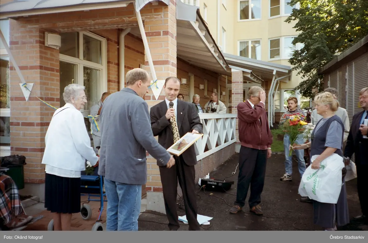 Blommor och tal vid Invigning av äldreboende i Västhaga, 1990-tal