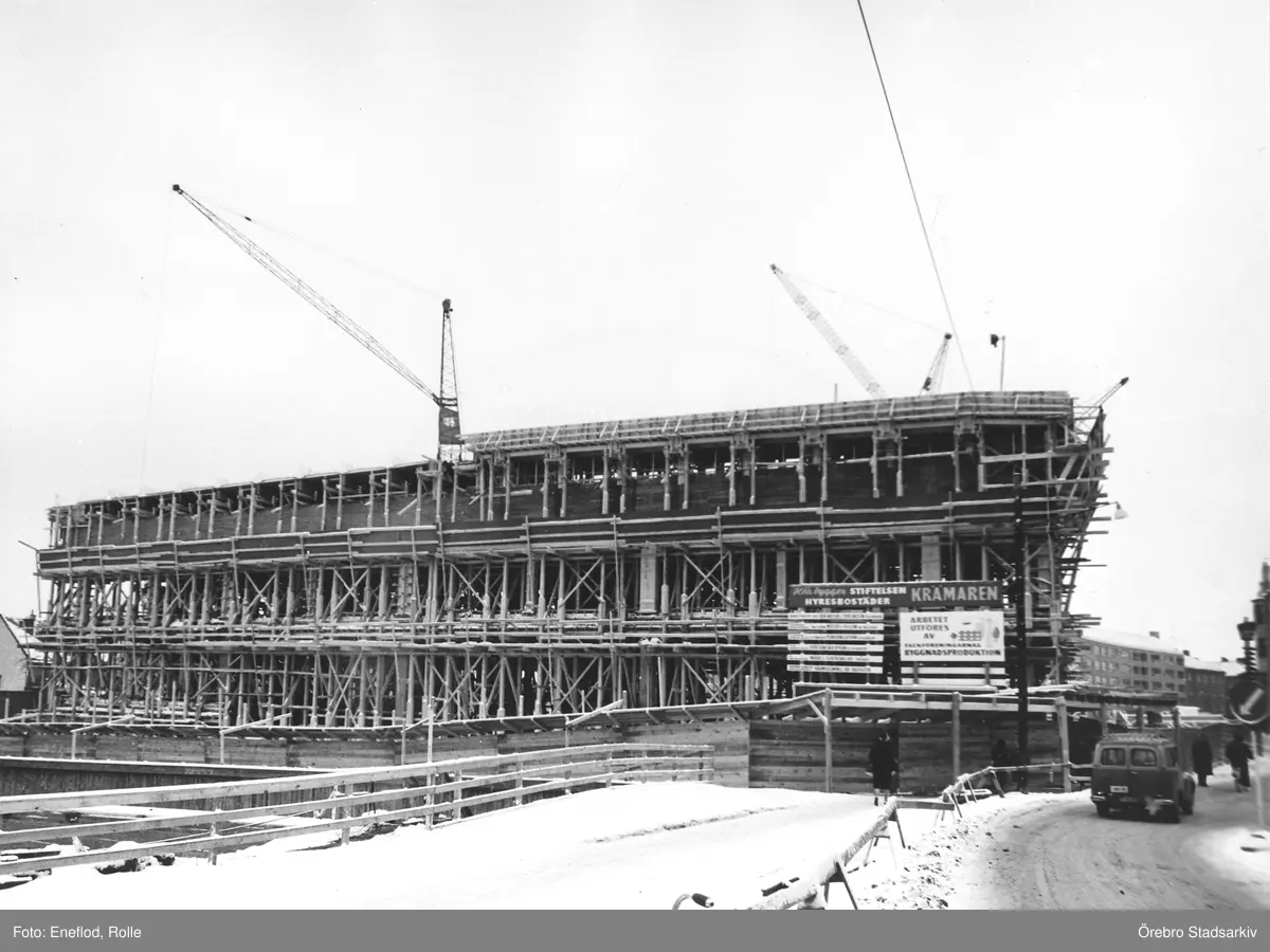 Byggnation av Krämarens lågdel mot Rudbecksgatan, februari 1961