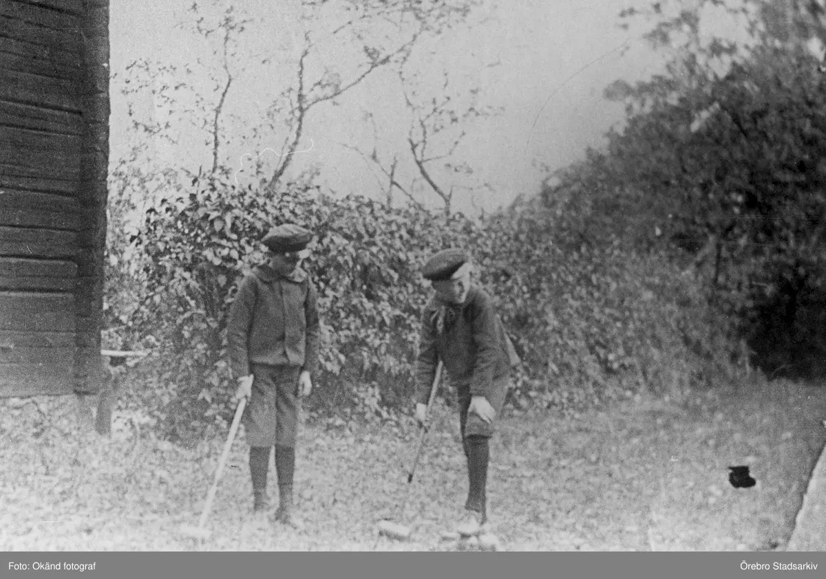 Pojkar som spelar krocket i Hovsta, ca 1920