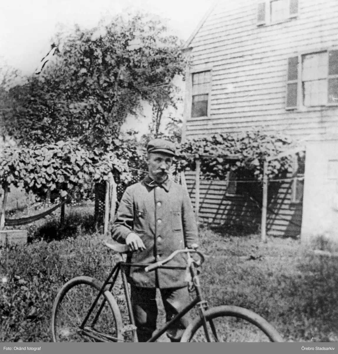 Karl Wilhelm Sundström med cykel i Brockton i USA, 1910-tal