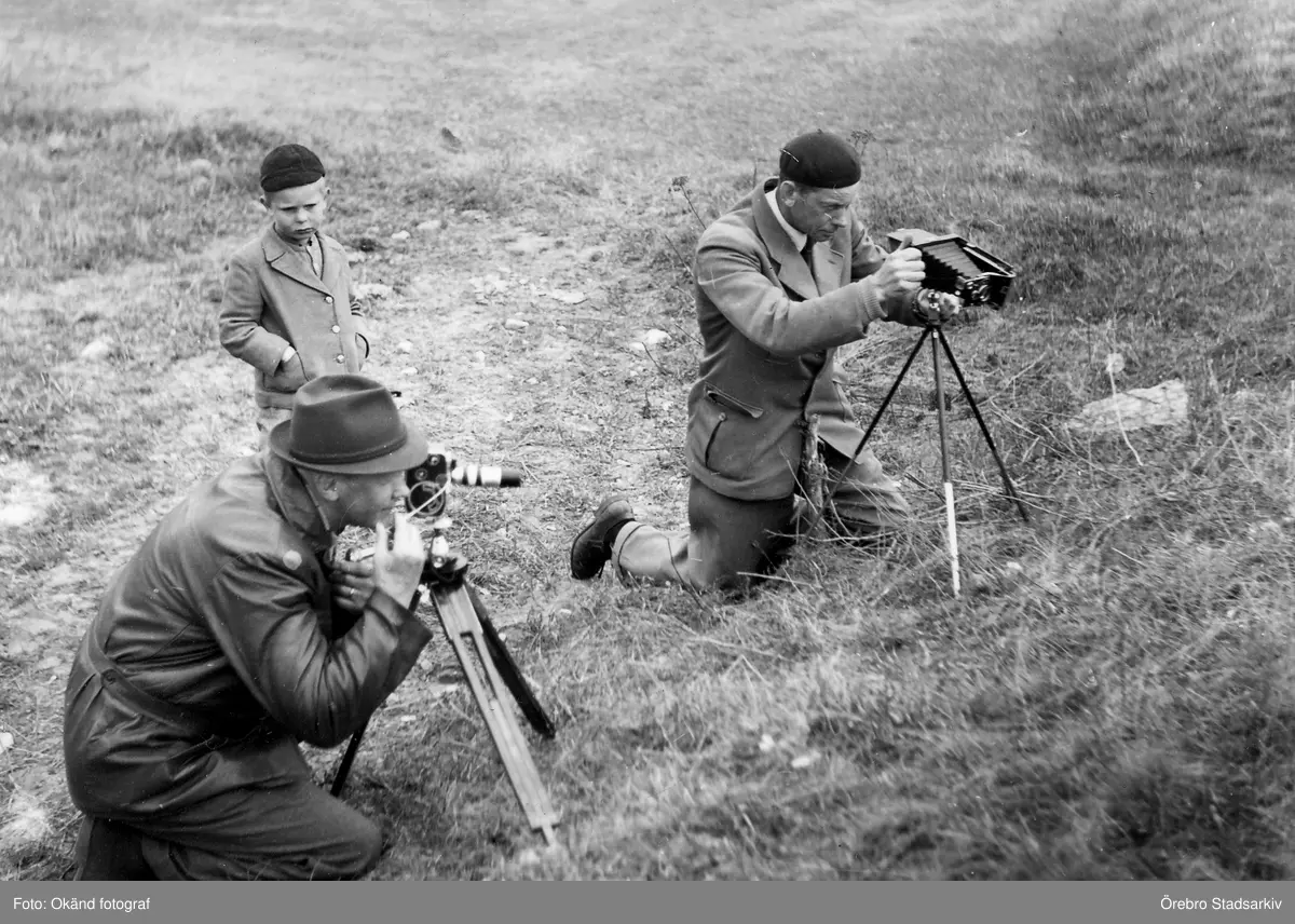 Pojke betraka fotograferna Hedberg och Ahnberg på Segersjö i Lännäs, 1950-tal