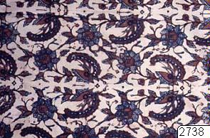 Detaljbild av stämpelbatik på bomullstyg. G.E.M. Erhållen av Lars Gillis 1972-12-14.