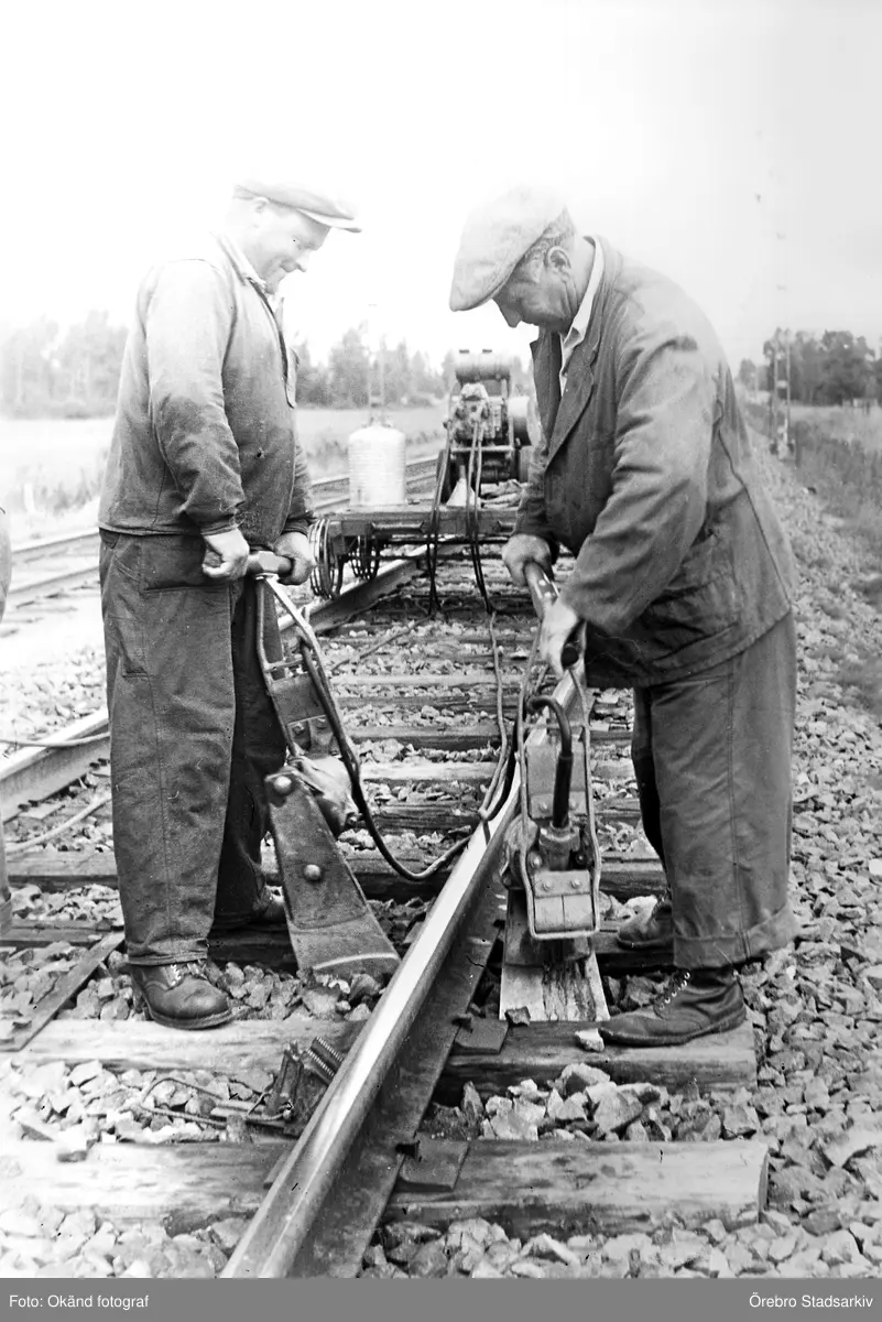 Sven Karlsson och Erik Johansson med stoppmaskiner på sträckan Marieberg-Mosås, 1950-tal